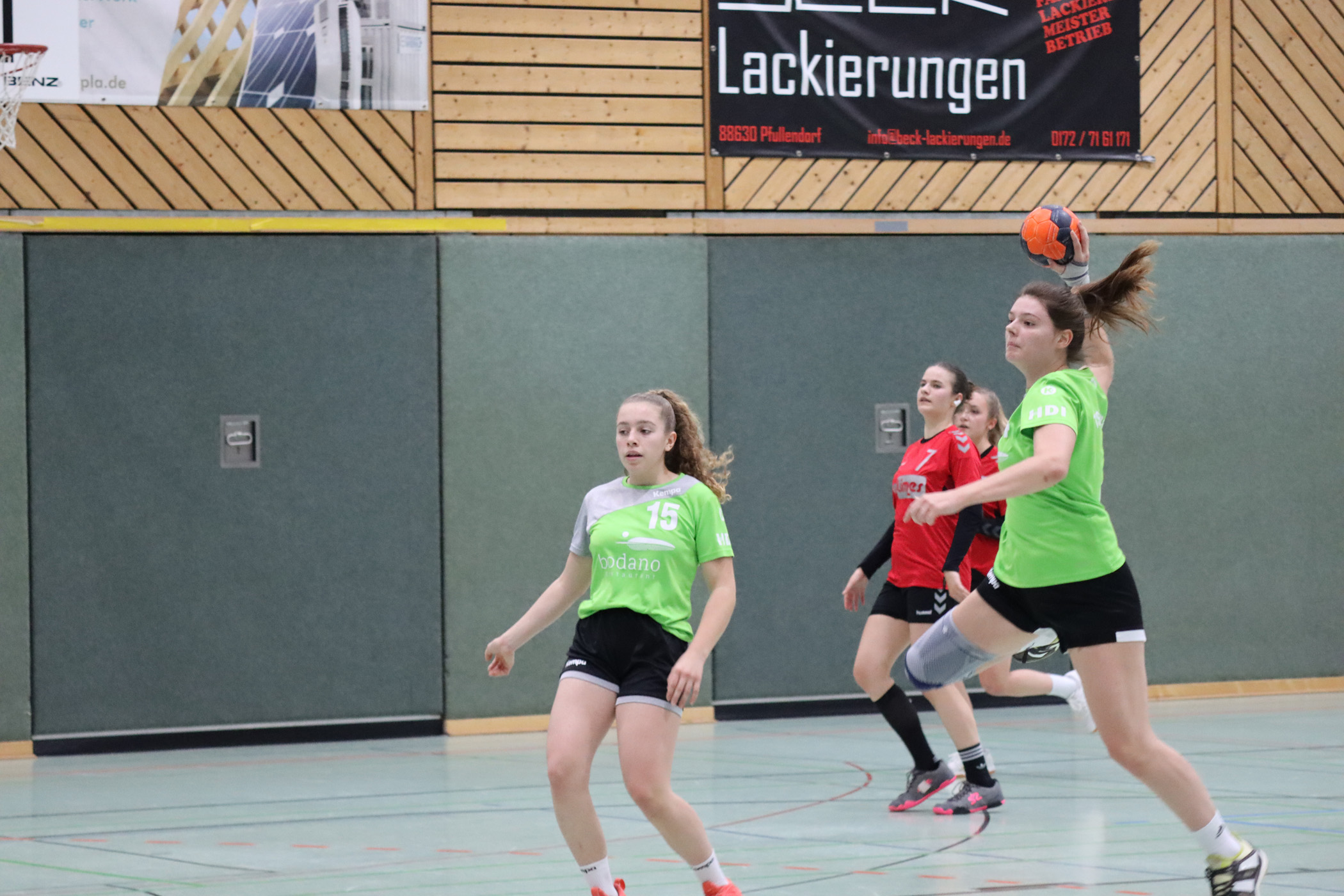 Unsere weibliche A-Jugend war am Sonntag in Pfullendorf gefordert: nach einem guten Start ging man mit 5:0 in Führung, bis zur Mitte der ersten Halbzeit konnte man diesen Vorsprung halten. Danach flog in der Halle die Sicherung aus, mit einer fünfminütigen Pause um das technische Problem zu lösen. Nach Wiederbeginn stockte das Angriffspiel, die sieben Minuten ohne eigenes Tor nutzten die Pfullendorfer um bis kurz vor Halbzeit auf ein Tor heranzukommen. In einer torarmen zweiten Halbzeit mit insgesamt nur elf Toren konnten unsere weibliche A-Jugend dann entscheidend davonziehen und einen Drei-Tore-Vorsprung über die Zeit retten.