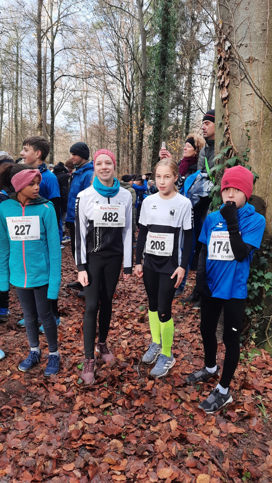 In Konstanz erwarteten die Teilnehmer bereits frühwinterliche Temperaturen und Sonnenschein. Die Kinder der U8 bis U12 liefen eine abgesteckte Strecke von ca. 900m durch den Wald des Schwaketentals. Unsere Jüngsten starteten vergnügt, gut gelaunt und auch ein wenig nervös in die Crosslaufserie. Für Antonia Hermann und Leni Schmid war es der erste Start bei einem Crosslauf. Leni zeigte sich laufstark und erlief sich den 2. Platz in der U8. Antonia kam als 8. ins Ziel. Karl Hoyer und Paulina Hermann traten zwar lauferfahren, aber erstmals in der U10 an. Sie trafen auf ein großes Teilnehmerfeld, in dem sie sich als jüngerer Jahrgang zu behaupten hatten. Karl wurde 10. und kam als erster seines Jahrgangs ins Ziel. Paulina wurde 29. In der Klasse U12 lief Viola Renna ganz vorne mit und kam in unter 4 Minuten ins Ziel. Sie erreicht damit den 7. Platz. Eine halbe Minute später erreichte Helena Freund das Ziel und belegte damit den 20. Platz. Hier zeigte sich, dass das Teilnehmerfeld besonders eng beieinander lag.